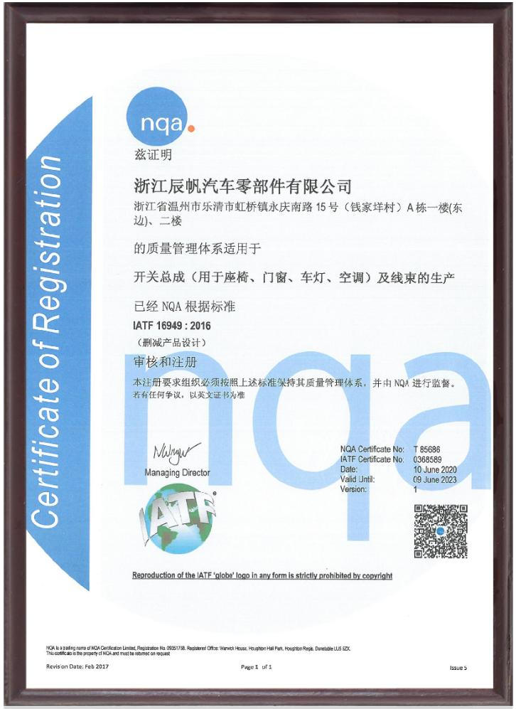 浙江辰帆,是一家专注从事汽车零部件研发、生产和销售的公司,生产座椅调节开关、车窗玻璃升降开关、汽车线束、阅读灯开关、汽车大灯调节器、汽车刹车灯开关、制动开关、换档开关、注塑件、五金件等产品,致力于提供高质量的汽车零部件,拥有先进的生产设备和技术团队,并严格按照国际标准进行生产和质量控制。